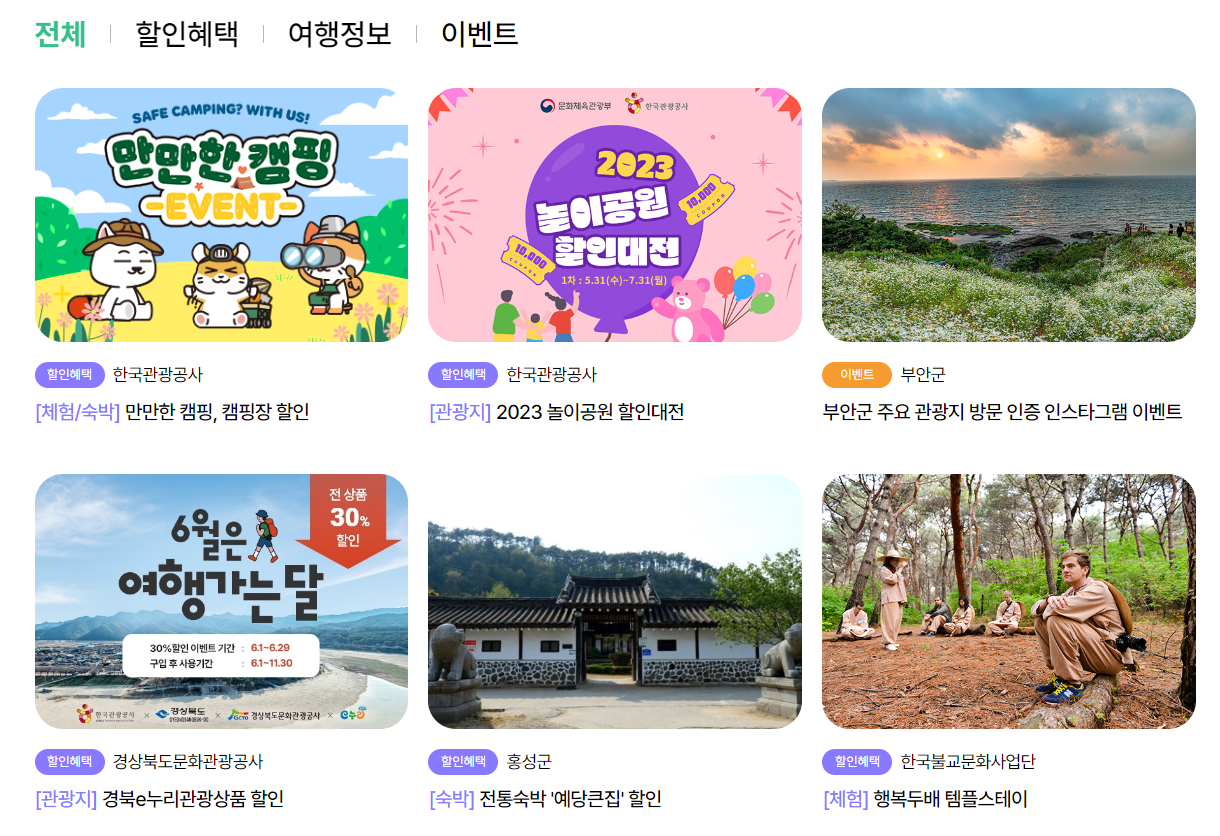 | 2023 년 6월 대한민국 여행가는 달 한국관광공사 숙박 교통 놀거리 혜택 정리 여행하는 달 여행의 달 (0) | 2023.05.23 |